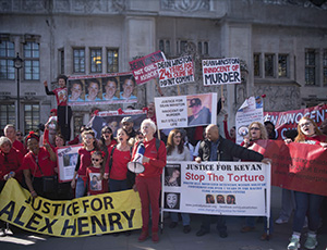 Demonstrators outside the Supreme Court in March 2017 appealing for justice for Alex Henry and others convicted of murder under the ‘joint enterprise’ label.