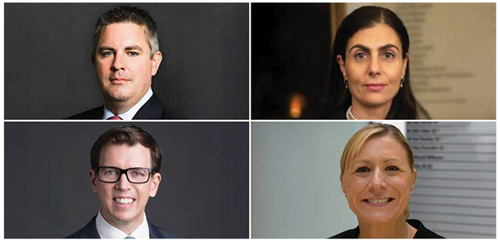 Clockwise from top left: Adam Cloherty KC, Maria Karaiskos KC, Rebecca Wade KC and Mike McClure KC